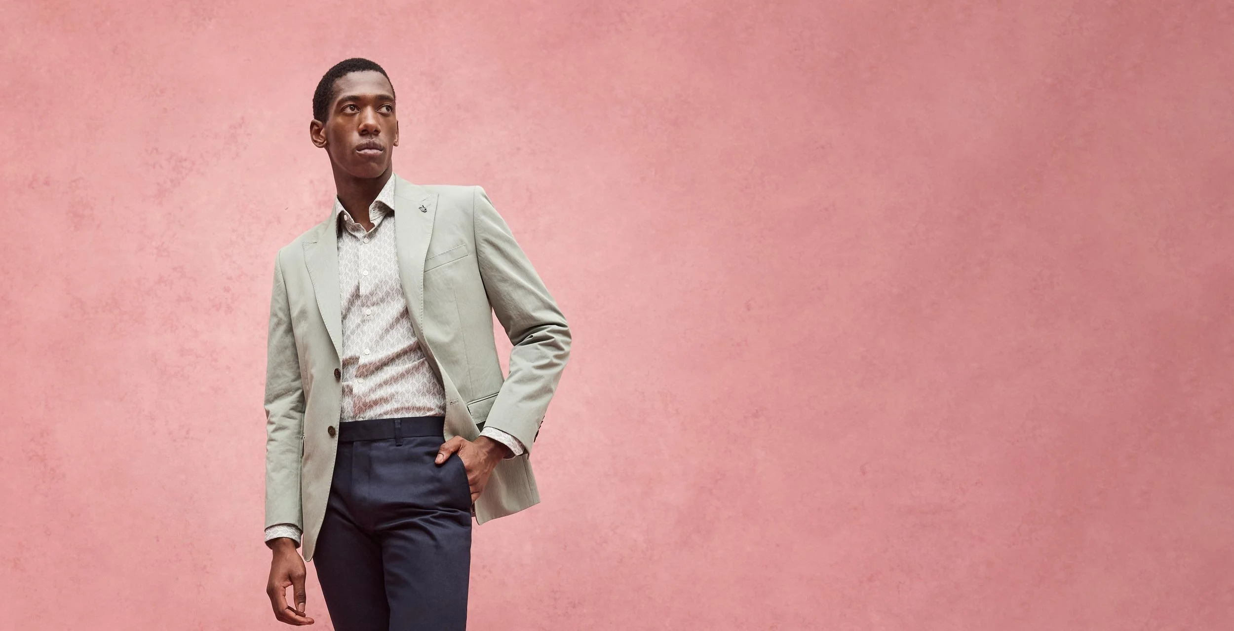 Traditional sharp tailoring shakes hands with newer, softer fits, while bright pops of pink and green coexist with timeless navy and grey.